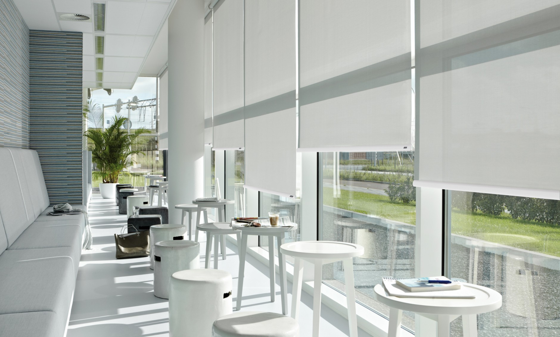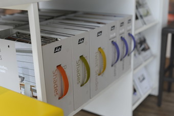 V našem showroomu v Ostravě máte možnost prozkoumat vzorníky se stovkami látek různých barev a struktur. Můžete si rolety vyzkoušet a třeba se i inspirovat.